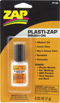 Uses: PLASTI-ZAP is a specialty CA adhesive developed for use on plastic and vinyl items. Most plastic modeling projects can be assembled with PLASTI-ZAP and very small amounts of ZIP KICKER. The special formula in PLASTI-ZAP allows it to screen out any mold release agents resulting in a permanent bond in 15 to 30 seconds. The joint can be filed and sanded in a minute or so, allowing extra fast assembly.