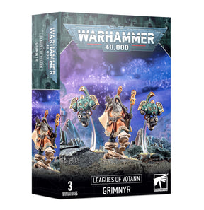 The Grimnyr – also known as Living Ancestors – are privy to the wisdom of the Votann, and the closest analogue to priests among the secular Leagues of Votann. Engineered with a psychically-active cloneskein that allows them to activate barrier-tech such as ward staves and energy-focusing CORVs, these Kin are able to rouse the fury of the immaterium against their foes.