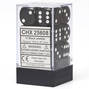 16mm d6 Opaque: Black/white Dice Set