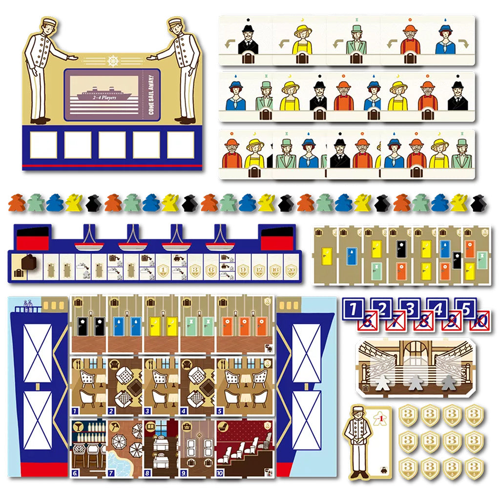 Come Sail Away! is a board game for 1-4 players in which you compete to board passengers upon your luxury liner, bringing them to their favorite cabins and facilities. Players can enjoy a deliciously thoughtful and brightly illustrated game that is simple to learn, yet always challenging.