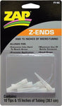 Z-ENDS fit over the standard bottle ends of all ZAP glues. The tips of Z-ENDS can be cut back to deposit larger amounts of glue. Sometimes glue can build up on the outside of a Z-END, let it harden and it will pop right off leaving a clean open tip. When using the Micro-Dropper tubing let the glue wick down through to the tube end, then gently squeeze the bottle to deliver a small drop of glue.