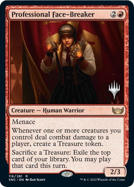 Whenever one or more creatures you control deal combat damage to a player, create a Treasure token. Sacrifice a Treasure: Exile the top card of your library. You may play that card this turn.