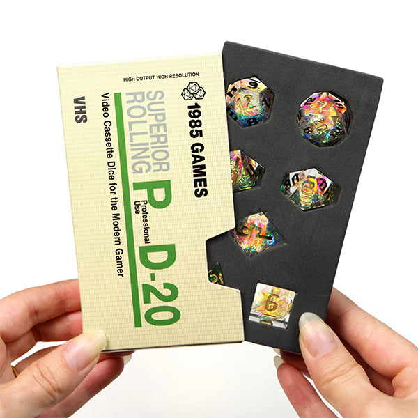 - Inspired by Nostalgia: The VHS Dice Set draws inspiration from the iconic aesthetics of vintage VHS tapes, infusing a touch of nostalgia into your gaming sessions. Add a unique conversation starter to your collection while enjoying the impeccable craftsmanship that stands the test of time.